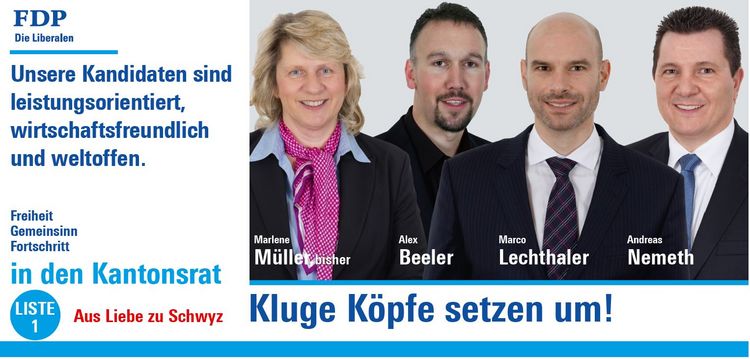 (Informatikerin, 1963, bisher), Andreas Nemeth (CRM, 1965) und Marco Lechthaler (Wirtschaftsprüfer, 1974, neu) sind gewillt, Verantwortung gegenüber sich selbst, der Mitwelt und der Nachwelt auszuüben. Sie sind bestrebt, in einer lebendigen Demokratie mitzudenken, mitzuhelfen, Willen für Verständigung zu zeigen und sich für eine ökologische und soziale Marktwirtschaft einzusetzen, in einem Umfeld, das Wettbewerb und Privateigentum respektiert. Nicht politisches Kalkül ist das Mass aller Dinge. Ein gesunder Menschenverstand und Ehrlichkeit zu einer liberalen Haltung vermag unseren Wohlstand zu sichern.