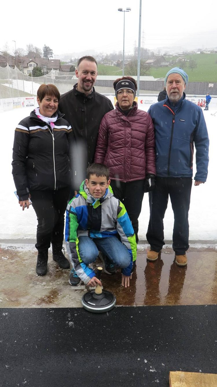 Siegerteam Schwarz: Regierungsrätin Petra Steimen, Kantonsratskandidat Alex Beeler, Susanne und Toni Frei sowie Thomas Steimen.
